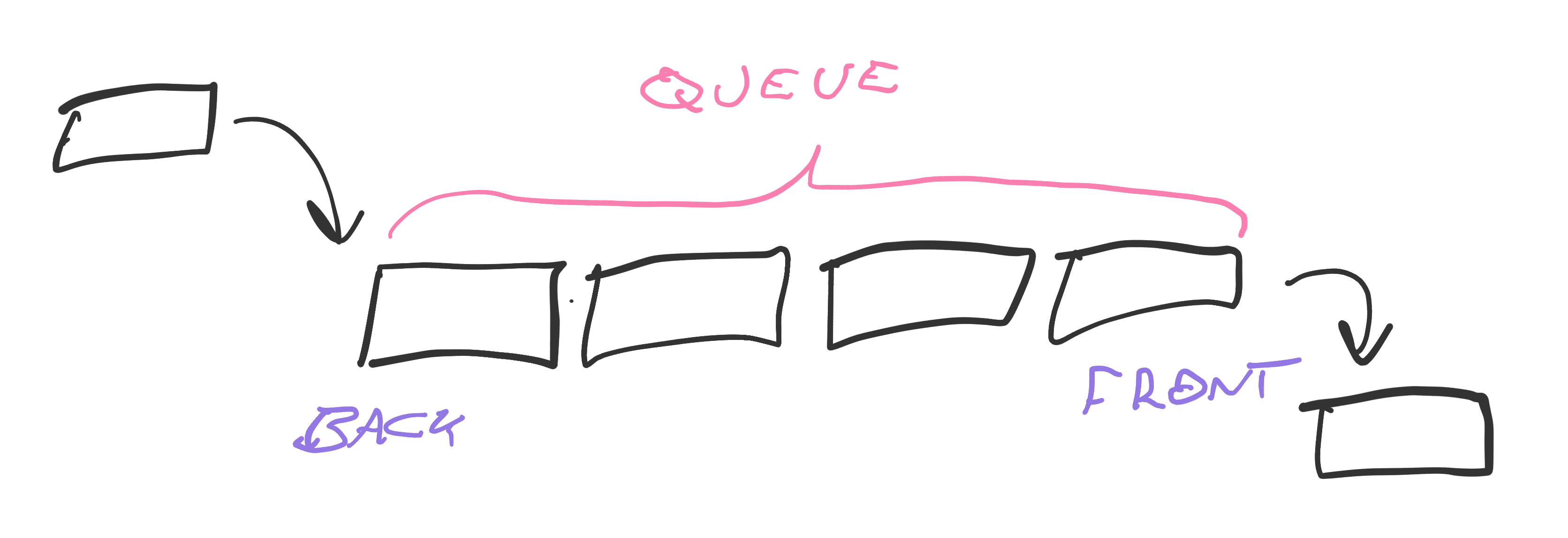 takes them out the front. Items in the middle wait their turn. Like a lunch-time burrito queue. First come first serve, FIFO for short (first in first out).